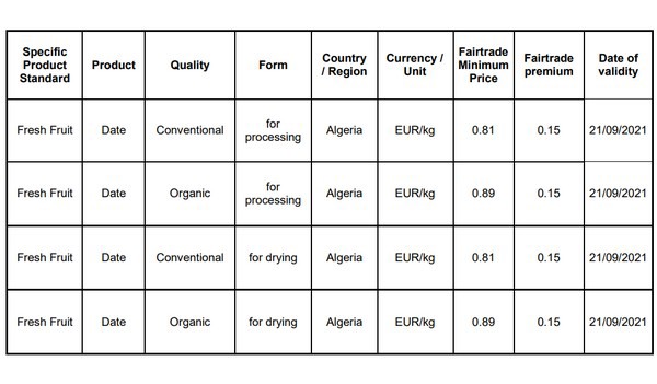 Fairtrade Standards & Pricing (S&P) has announced new Fairtrade Minimum Prices and Fairtrade Premiums for Dates.