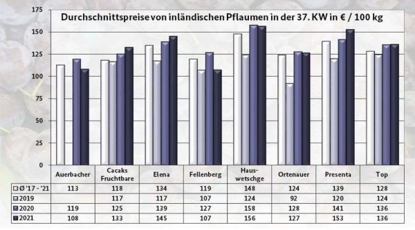 Local plum offerings formed the basis of the range, above all Hauszwetschge, Top and Ortenauer. The presence of Cacak's Fruchtbare was obviously limited, while the importance of Presenta grew.
