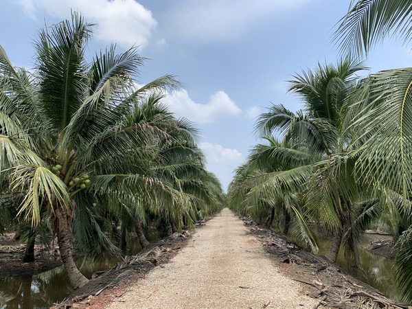 When asked about the unique characteristics of fragrant coconuts, Jason replied, "the environmental and meteorological conditions in production areas are unique, and they provide fragrant coconuts with their characteristic fragrance and flavor. The fragrant coconut production area in Damnoen Saduak, which is roughly 80 kilometers in circumference, is one of the core production areas for fragrant coconuts. The coconuts there enjoy sufficient moisture, and since the region is close to the coast, the coconut trees also take advantage of saline and alkaline levels in the soil. Thai fragrant coconuts are large and their skin is thin. The coconut water and coconut meat both possess a pleasing fragrance. The sweet flavor refreshes the mind. That is one of the unique characteristics of Thai fragrant coconuts."