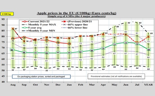 Per the January 2022 update, the ongoing 2021/22 crop for EU27 has been estimated at 11,777 tonnes; this is 6,7% higher than the preceding 5 year average and 11 % above the 'small' crop of the past marketing year (data from WAPA for 20 MSs, from Eurostat for the remaining 7 MSs).