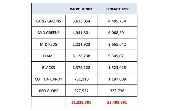 The Mexican Table Grapes Growers Association (AALPUM) has released its first estimate for table grapes exports from Mexico for the 2022 season.