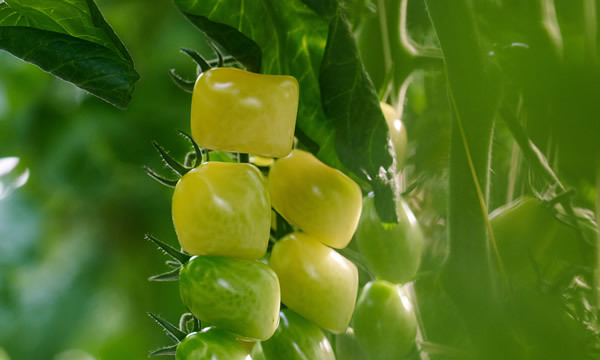 The tomatoes were genetically manipulated using the 'CRISPR' technique. The gene "AUCSIA1", which normally ensures the round shape, was cut from the DNA, so that the tomatoes spontaneously took on a square shape.