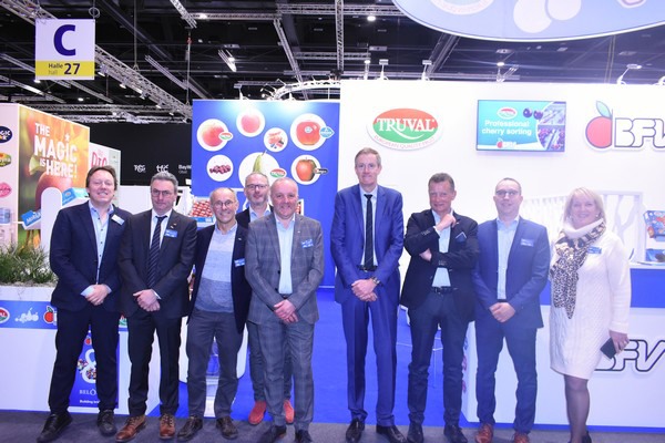 BFV at Fruit Logistica. F.l.t.r: Diether Everaerts, Patrick Thoen, Ludo Lousbergh, Gunther De Vadder, Marc Grauwels, Marc Evrard, Filip Lowette, Davy Smets, and Betty Slingers.