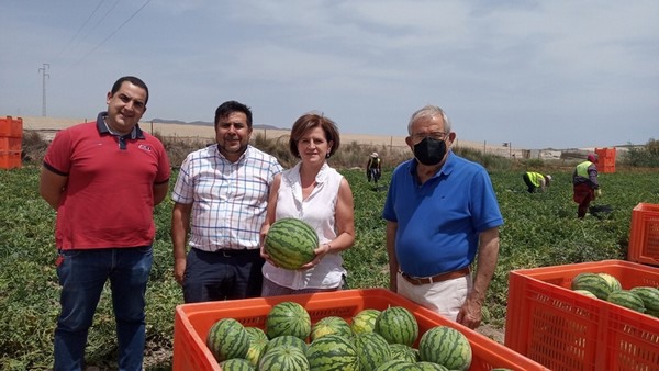 The white (striped) and black watermelon continue to prevail because of their endurance in export and great flavor. "This visit allowed us to verify the magnificent quality of this harvest. We expect the price of these first cuts will be favorable and we hope prices remain at this level throughout the campaign," Adoracion Blanque stated. The campaign in the area of Cuevas de Almanzora will last for about a month, after which it will continue in the area of Murcia and Levante. ASAJA recalled that the outdoor watermelon campaign in Almeria will run until August, so there is still a lot of product to be collected.