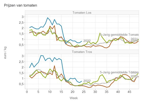 The fact that the tomato market quickly found a new equilibrium after a price dip in early May does not alter the fact that it could still be a difficult summer. An accumulation of tomato production, as also described in a recent WUR report, is still possible. Especially since tomatoes from countries with less high-tech greenhouses also come onto the market during the summer. Moreover, the weather also plays a role in consumption. And then there is inflation, which hits consumers in their pockets. That, too, can have an impact.
