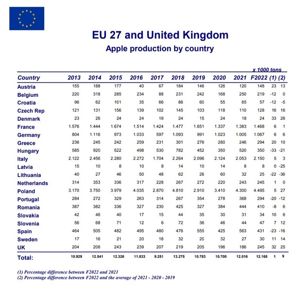 The World Apple and Pear Association (WAPA) released the 2022/2023 European apple and pear crop estimate on the occasion of the 47th edition of the Prognosfruit, which took place on August 3-5 in Belgrade, Serbia, returning as an in-person event after two years of online editions. Philippe Binard stated: “The apple production in the EU27 and UK is estimated to increase by 1% to reach 12.167.887T compared to last year. This year’s crop is also forecasted to be 9% above the average of 2019-2020-2021”.