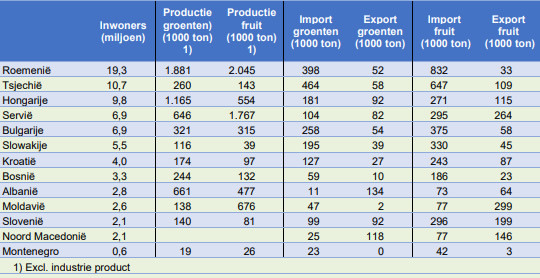 Romania with over 2 million tonnes and Serbia with over 1 million tonnes are the main fruit producers (excluding industrial products) in the region. In Romania, apples and watermelons are grown mainly. In Serbia, mainly apples. Moldova, Hungary, and Albania account for 500' to 600,000 tonnes of fruit. Moldova grows mainly apples. So does Hungary, but in addition, this country also produces a lot of watermelons. The latter product is especially large in Albania. In this country also, the cultivation of citrus is of some prominence. Citrus is also popular in Croatia. The Netherlands exports mainly to the Czech Republic, but there is growth within other countries. For both the Netherlands and Belgium, the Czech Republic is the most important sales market in Southeast Europe. The Netherlands exported 236,000 tonnes of fresh fruit and vegetables to the Czech Republic last year incl. re-export. In 2018 and 2019, it was more. Belgian exports to the Czech Republic last year, at over 100,000 tonnes, were less than in previous years when they often amounted to around 140,000 tonnes.
