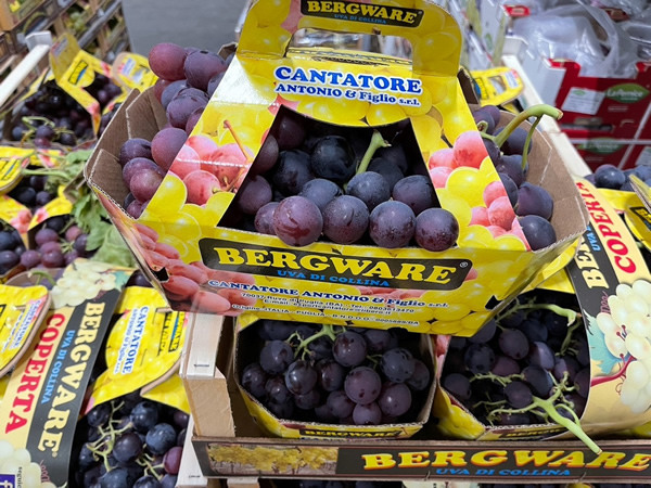 Lucien visited, among others, their regular supplier, La Pernice. Luba Fresh exclusively carries these in the Dutch market. They are also the sole BERGWARE distributor in the south of the Netherlands. "We get these grapes in their unusual packaging three times a week. They're already divided up before arrival," explains Lucien, who is thrilled that his son Luuk has inherited his love for the business. "Next year, it's 30 years that I've worked with my Italian business partner, Mario Perrone, who's known Luuk since he was in diapers."