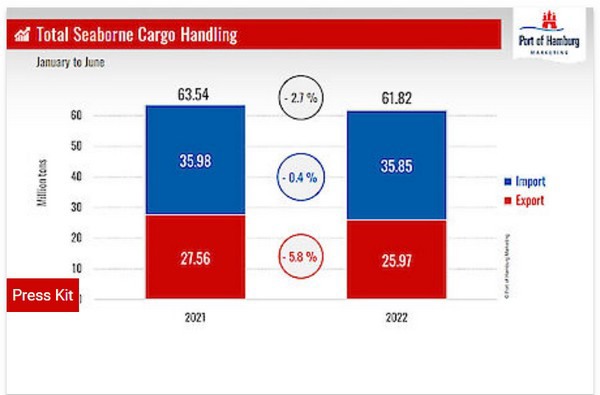 “The first half of 2022 confronted companies in the Port of Hamburg, their workers, also all our logistics partners and port customers, with very special challenges. The war in Ukraine, for instance, led to far-reaching sanctions in foreign trade that affected and will further affect seaborne cargo throughput in the Port of Hamburg. Together with the almost complete cessation of container transport with Russian ports, another consequence of the Russian attack on Ukraine – apart from downturns in general cargo handling – was also a steep reduction in bulk cargo handling,” said Axel Mattern, CEO of Port Hamburg Marketing.