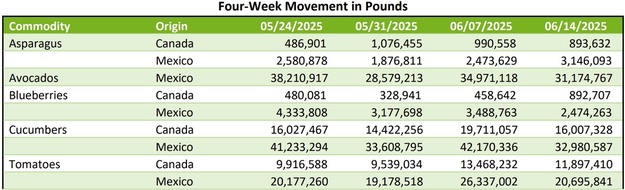 The U.S. seasonal produce market continues to shift as movement patterns and prices adjust across major growing and shipping regions. Below is an overview of current activity by commodity as of June 18, 2025.