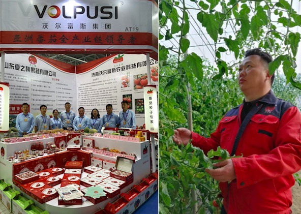 Volpusi Group participated in a fruit and vegetable convention (left) and Mr. Wu Jingchun (right), the CEO of Volpusi Group, visits a tomato plantation