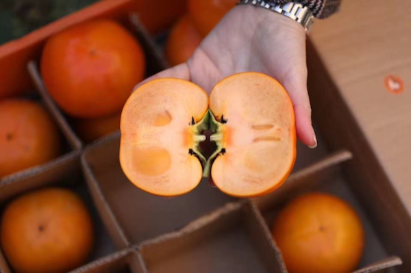"We package our sweet persimmon in 2.5 kg boxes, which contain 12 large sweet persimmon or 18 medium sweet persimmon. We only have a supply season of roughly one month per year, but the sales conditions are great. According to market feedback, Chinese consumers are becoming more aware of sweet persimmon, and they love this fruit."
