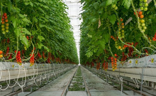 The greenhouse applies data-driven production and retail models. And all production methods meet the Global GAP standards. Top-quality vegetables are produced in large volumes under optimum conditions. Their product quality is rigorously controlled with advanced technology to guarantee high efficiency and food safety. The greenhouse has a huge production volume, a long lifespan, a stable micro-climate, low waste levels, and optimum soil usage. The automated equipment can grow vegetables in coconut coir with liquid fertilizer under climate-controlled conditions. These are the most advanced vegetable production conditions in the world. Science-driven technology allows the greenhouse to completely recover all rain water and CO2. The Kaisheng Haofeng AI greenhouse produces 5-6 times more tomatoes than other greenhouses of similar size or open-field farms, and only uses 5% of their irrigation water. This is the most efficient way to produce tomatoes.