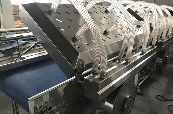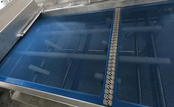 The engineers at Lueon Technology recently improved the air-drying equipment. "Air-drying equipment uses cold air to dry the vegetables. This method eliminates up to 95% of the water on the surface area of leaf vegetables and processes 1-1.5 tons per hour. We have added a touchscreen to visualize the functionalities of the air-drying machine. Clients are able to quickly and conveniently adjust the functionalities of the equipment, such as wind power and processing speed. In addition, the upgraded equipment is not only more stable and safe, but also IP67 waterproof. The machine is moisture proof and waterproof, and can be rinsed down directly. Other than that, we have added a special conveyor belt that makes it easier to open up packaging and wash the vegetables," said Valencia.