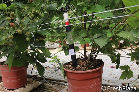 "In the greenhouse we are currently in, we have installed an environmental thermometer, a thermo-hygrometer and some sensors to measure the PH values and the electrical conductivity of the substrate. We also have a tensiometer, a sensor for solar radiation, a sensor for leaf humidification, a mini outdoor weather station and actuators for opening the motorized doors. We also have the ability to determine when the fans are turned on as well as the fertigation system. The grower receives a notification when certain values reach a certain point, a pass/fail notification. All of these functions can be managed from a smartphone and that saves a lot of time and manpower."