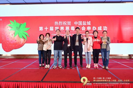 "The ninth international strawberry symposium took place in Rimini (Italy) this year. At the same time there was a synchronous activity in Yancheng with the theme "one strawberry, one world".