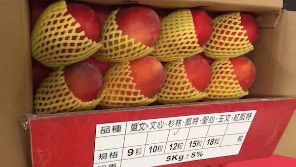 Fangshan in Pingtung officially begins the harvest every year in late April and continues until early July. The peak period falls in May and June. The harvest season is already almost over. Most of the Aiwen mangoes in the market are large mangoes, whereas small and medium mangoes dominate earlier in the season. "This year the Aiwen mangoes do not perform as well in the Chinese market as last year. The export volume is somewhat smaller than in previous years. The current price is around 60 yuan [9.28 USD] per 0.5 kg. That is about 25% less than the 80 yuan [12.38 USD] per 0.5 kg last year." This is according to Xiao Yu of Beijing Xinghuirong Trade and Commerce Co., Ltd.