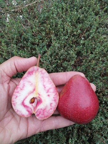 Just as with apples, there is a lot of interest for red-fleshed pears too (see photo below). Some ancient varieties found on the Romagna hills, known as "Cocomerine", boast a red flesh. There are two types - one ripens early (August), while the other is late (early Autumn). In 2003, these pears received the Slow Food recognition thanks to the oxidant compounds that convey great anti-inflammatory properties. CREA carried out a few crossbreeds with "Cocomerine" pears, obtaining some new lines that boast interesting organoleptic qualities and a red flesh. The first experimental tests are currently underway.