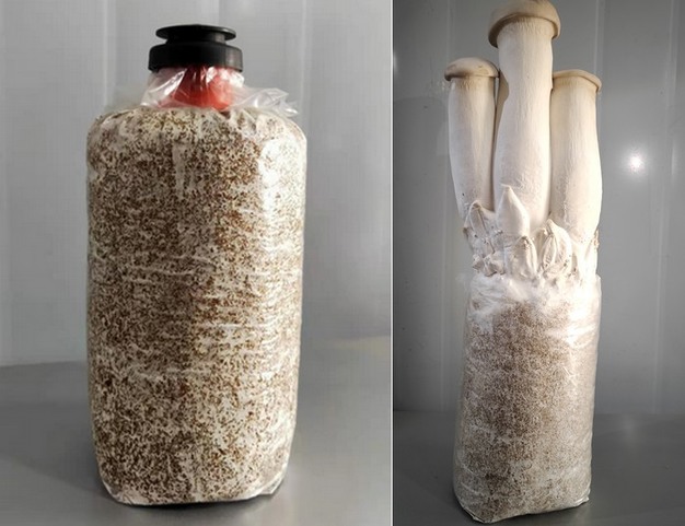 Manager Xu first introduced the growing conditions of King Oyster mushrooms. "The King Oyster mushroom production in China takes place on an industrial scale and continues all year round. The optimum temperature, light, water, and air conditions are manually created and not affected by weather conditions or other outside influences. The mushrooms can grow all year round, but they require climate control to cool the room down or heat the room up, according to the mushrooms' needs, which costs a lot of energy. By comparison, mushroom grow bags are far more efficient. Mushroom grow bags contain soybean meal, corn flour, wheat bran, corn cobs, and sawdust. Mushroom grow bags are similar to soil that already contains seeds. They provide the right conditions that stimulate the growth of mushrooms."