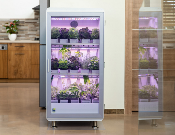 The company came up with the design of these growing cabinets by following a couple of principles. “Early in the development process, we defined our two major goals,” he says. Having a substantial yield for the device footprint, and maximizing user convenience and pleasant design that could fit into living areas.