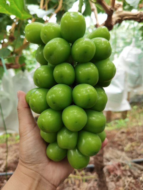 "The Shine Muscat grape was originally introduced from Japan. The first Chinese Shine Muscat grapes were grown in Xichang in 2011. The Shine Muscat industry rapidly expanded until 2016. This variety is sensitive to temperature and humidity levels. Xichang is at an altitude of 1,500 meters above sea level where all seasons are like spring. The temperature differences between day and night are big, and there is enough rainfall. These conditions are ideal for the plantation of Shine Muscat grapes."