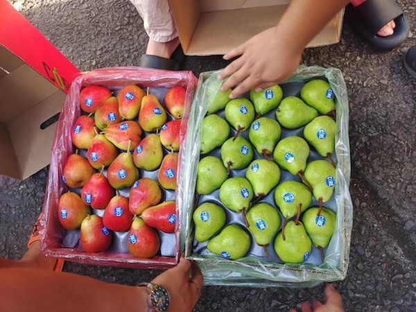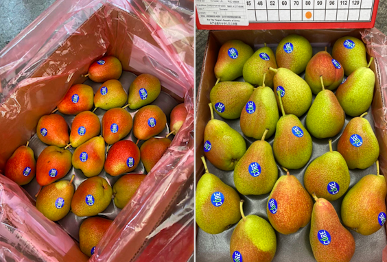 The first container imported by QinGuo primarily contained colorful Forelle and large Packham pears. Forelle pears are a late-season variety. The fruit peel is green with 'rouge cheeks'. This variety meets the requirements and preferences of Chinese consumers very well, from the flavor to the colorful appearance. Packham pears are popular too, but for different reasons. Packham pears are soft, juicy, and glutinous. The color of the peel is yellow and green, which turns more yellow as the pear ripens.