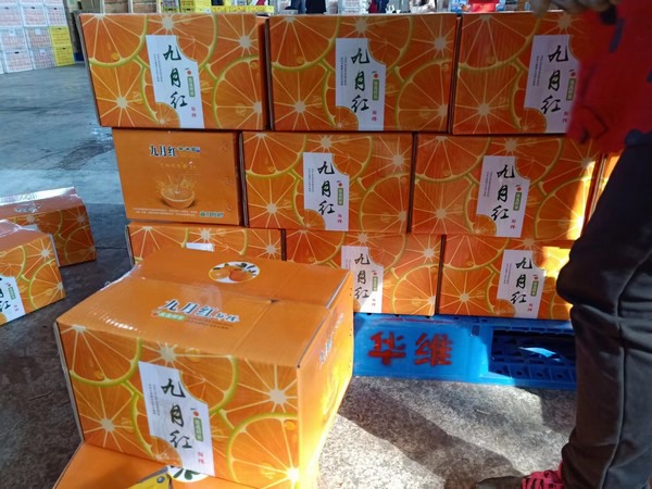 The Jiuyuehong navel orange is one of the earliest-ripening navel orange varieties in China. It is rich in juice with a jelly-like flesh. In previous years, this variety was launched in September. This year, due to the dry weather, the production season was postponed until the end of October and it lasted until the end of December.