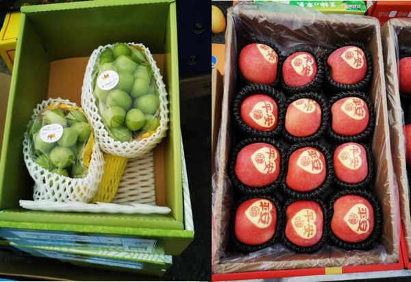 Left: Korean Xiangyin grapes; Right: Apple gift box