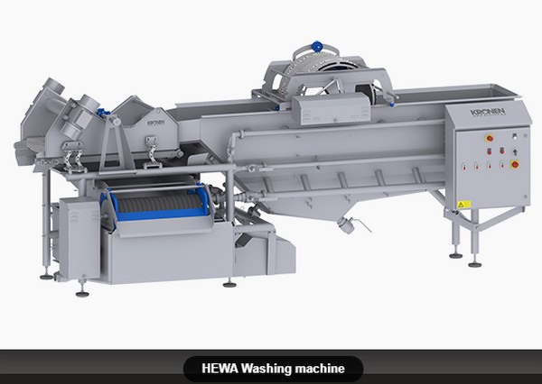 Optimized in terms of hygiene and cleaning: a continuous washing machine, The HEWA 3800 HELICAL washing machine is a further development of the GEWA 3800 PLUS. It has been optimized in terms of hygiene and reduced cleaning time. Like the GEWA 3800 PLUS, the machine is used for the continuous pre-washing, washing, disinfection, mixing, treatment, and rinsing of lettuce, fruit, and vegetables. The HEWA 3800 processes up to 2,500 kilograms per hour.