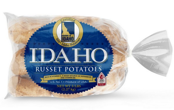 5-lb bag of fresh Idaho potatoes with Better Choices For Life logo.