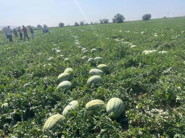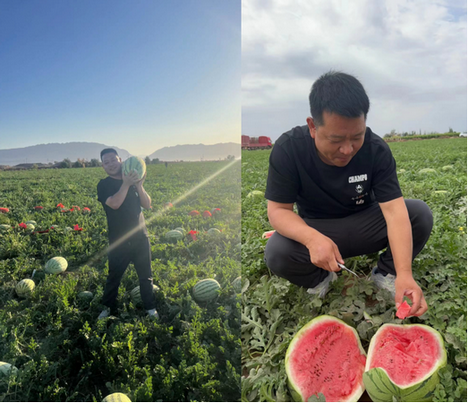 Selenium sand melons (Gobi watermelons) in Turpan, Xinjiang began to be picked at the end of May. The production season is about one month, and the first batch of melons has been sold to different regions. Mr. Zhou Junlin from Shaanxi Tangsen Fruits and Vegetables Professional Cooperatives is harvesting these melons in Turpan. Mr. Zhou said that this year, the local production is satisfactory, but the two touches of frost around May Day delayed the ripening and the production.