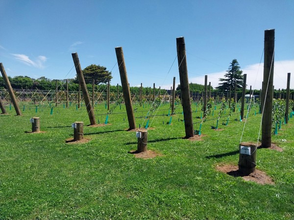 Almost half the orchard's ground area has been planted, with three varieties of kiwifruit, five varieties of apples, four varieties of cherries, and avocados. Lemons, mandarins, limes, oranges, and blueberries will also be planted in the coming weeks. Fruits are being cultivated both conventionally and with experimental techniques, including UFO (upright fruiting offshoot) cherries, FOPS (future orchard production system) apples, and under-cover in-bag blueberries. Cultivation at the Research Orchard is also forward-looking in its mindfulness of sustainability with materials used and water irrigation.