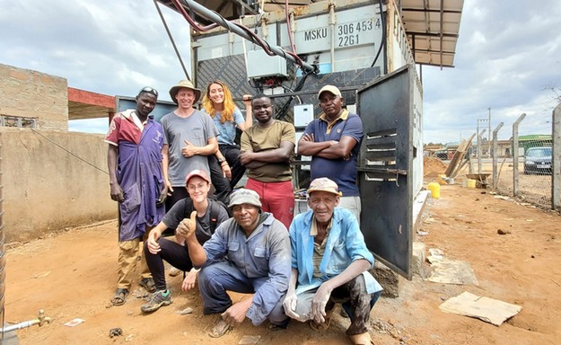 In 2019, Verploegen turned his attention to the idea of building a larger evaporative cooling room and joined forces with Glicksman to explore using forced, instead of passive, airflow to cool fruit and vegetables. After studying existing cold storage options and conducting user research with farmers in Kenya, they came up with the idea to use active evaporative cooling with a used shipping container as the structure of the chamber. As the Covid-19 pandemic was ramping up in 2020, they procured a used 10-foot shipping container, installed it in the courtyard area outside D-Lab near Village Street, and went to work on a prototype of the forced-air evaporative cooling chamber.