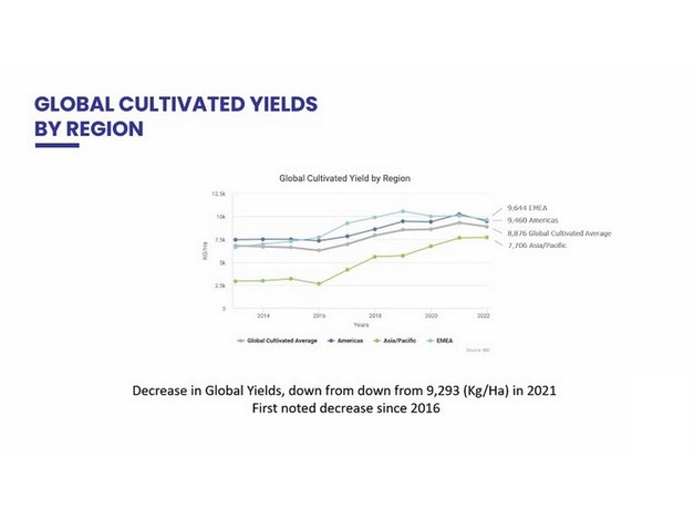 The global blueberry industry, which has become accustomed to stellar growth in nearly all key measures over the years, was somewhat surprised as the average global yield fell for the first time since 2016. The industry also faces "a significantly disrupted year with markets under pressure due to increased costs and inflation." This was revealed at yesterday’s (15 August, 2023) International Blueberry Organisation (IBO) 2023 Global State of the Blueberry Industry report launch.Cort Brazelton, Chief Editor and co-author of the report, said: “The decrease in yields took 96.3 MT out of production, with average growth this year coming from new hectares, which come into full production. Since 2018 global volumes increased by 77% while the annual price declined by 11%. The pricing is not seeing the high peaks and values as in the past. It remains consistent on average, depending on region and market. There’s notable pricing decreases in Europe, Middle East, Asia and Africa. The 2022 pricing is strengthened by Canadian imports from the US and Mexico.”