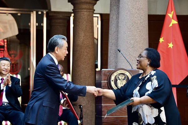 China's minister for foreign affairs Wang Yi and South Africa's agriculture minister Thoko Didiza yesterday at the 15th BRICS summit (photo: Government Communication and Information Service)