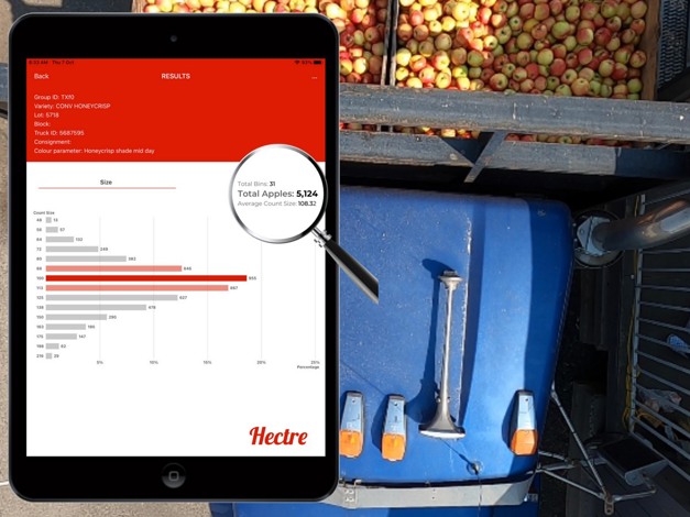 More than 5000 apples per truck can be sized by Hectre’s Spectre Top Down solution.