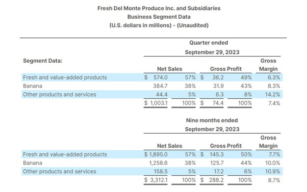 Fresh Del Monte Produce Inc. today reported financial results for the third quarter and the nine months ended September 29, 2023.