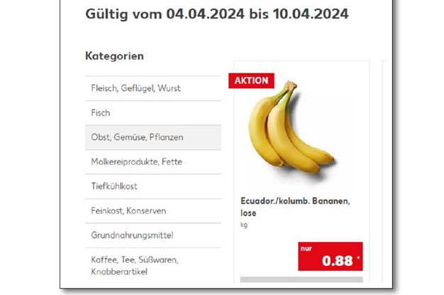 The guilds of banana producers and exporters from Colombia, Costa Rica, Ecuador, Guatemala, Peru and the Dominican Republic have identified that the retail chain Kaufland (Germany) is currently advertising an offer for a kilo of bananas of Latin American origin at €0.88.