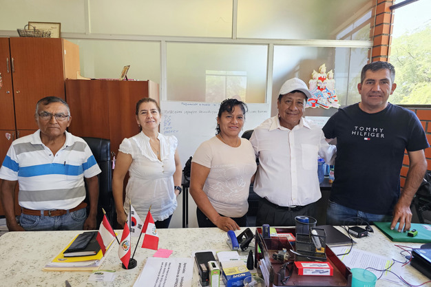 Part of the APPBOSA executive team (from left to right): Ermitaño Socola (board member), Marcia Herrera (certification manager), Flor de María Alvarado (minutes secretary), Valentín Ruiz (president) and Percy Arnaldo Ordinola (vice president).