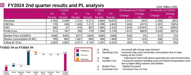Ocean Network Express (ONE) released the financial result for FY2024 2nd Quarter (from July 2024 to September 2024).