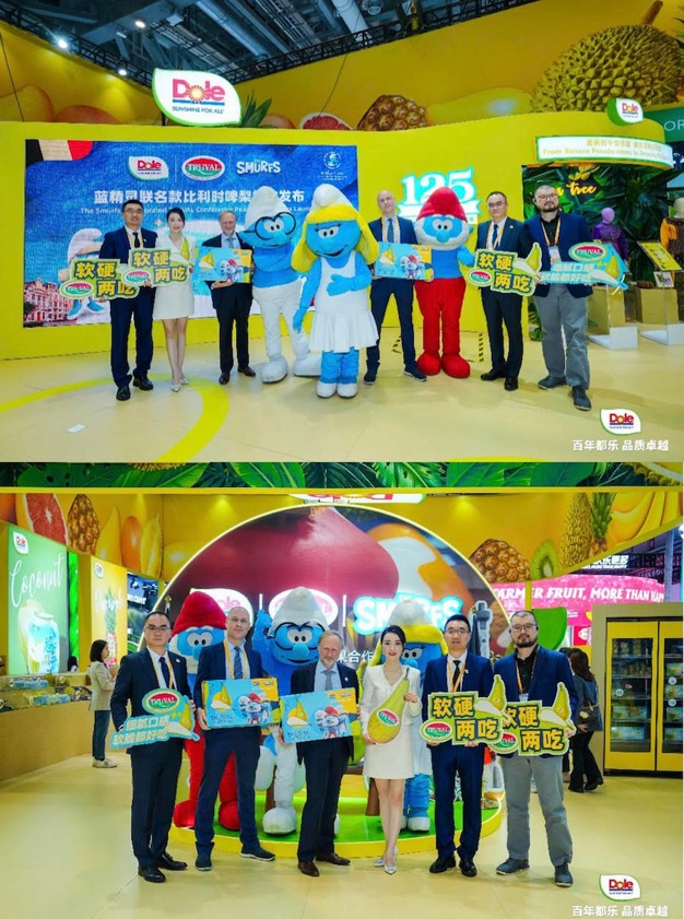 Dole and TRUVAL launched the first Smurf IP Co-branded Belgian Conference Pear on the 13th anniversary of collaboration.