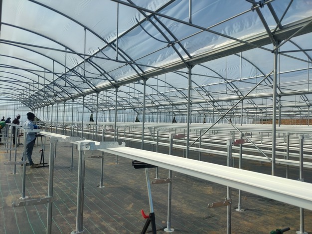 "We utilise an innovative technique that is applied directly on site, thereby reducing the number of joints between the sheets. This approach enables us to construct seamless gutters that extend the entire length of the greenhouse.