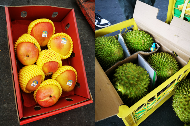 Left: Australian mangos; Right: Vietnamese Kanyao durians