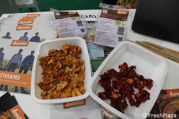 Giovanni Buccheri, Demeter Italia's director, and Andrea Ferrarini, Bio Ferrarini's sales and production manager at Sana Food 2025