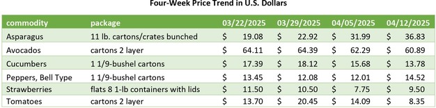 This report summarizes current volume and price trends for major seasonal perishable commodities based on spot market sales and expected shipping activity across key regions in North America. Prices generally reflect good quality unless noted otherwise.