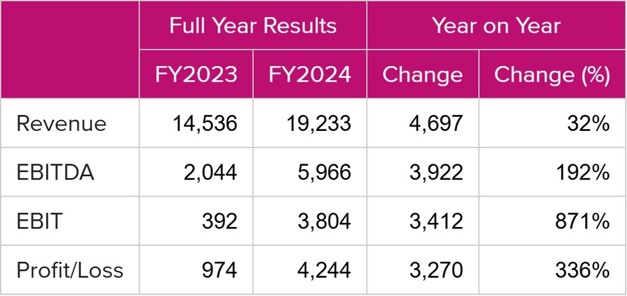 Total revenue reached $19.2 billion, up 32% from FY2023. EBITDA more than doubled, rising 192% to $5.97 billion, while EBIT increased by 871% to $3.8 billion. Fuel prices declined slightly to an average of $570/MT, while bunker consumption rose 9% to 3.76 million metric tons.