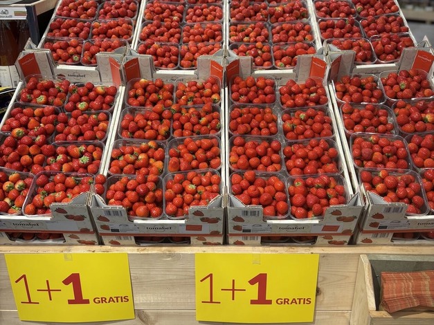 To accompany this peak in production, the store introduced a promotion the weekend before last, "1+1 free for €4.99 [5.64 USD]." The promotional offer had the desired effect. "It was another sunny weekend, and we could clearly see the increase in sales over the week, so it was really the right time to run such a promotion on Tomabel Sensation B-caliber strawberries. It is a slightly smaller strawberry than we are used to seeing, but it is still very attractive. We worked on a competitive price and maximum freshness with day-to-day orders. This strategy produced very good results, with over 1,200 trays sold over the weekend! This means that, in retrospect, we were not mistaken about the relevance of this promotion."