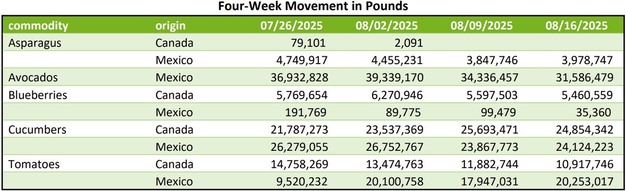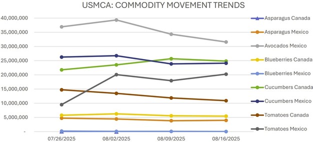 Seasonal changes have adjusted the commodities covered in this update. Strawberries were removed due to limited growing areas. The list will be revised regularly to reflect the current trade situation for North American perishable shippers.