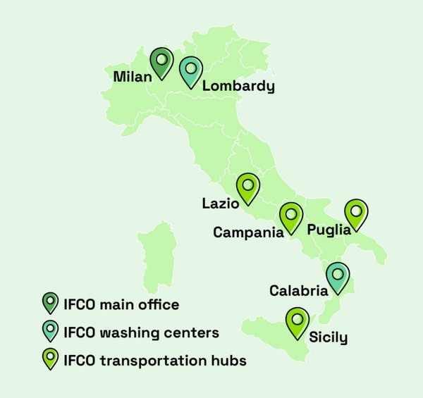 The company already operates several facilities in the region, including transit points in Catania (Sicily), a washing centre in Calabria near Catanzaro, and depots between Naples and Salerno in Campania. The new hubs extend IFCO's capacity in areas that play a central role in Italy's fruit and vegetable exports.