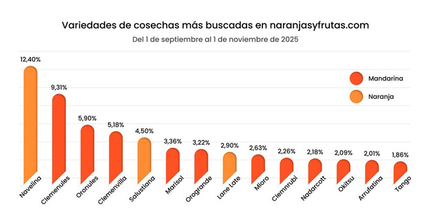 The goal of the report by Naranjasyfrutas.com is to share industry early-season search trends, where thousands of growers post their crops for free, and many stores actively seek available crops to contact and purchase. "We believe that this data showing the trends of the varieties most searched for by the shops could be of interest to the sector," stated Juan José Bas, the platform's manager.